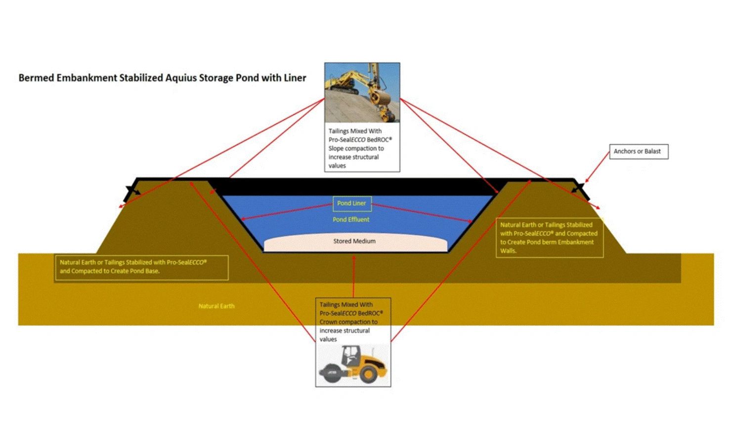 Creating a stabilized foundation and berm with Pro-Seal ECCO for an above grade basin increases the structural integrity, greatly reduces stops erosion, create secondary containment and creates a smooth even surface for liner placement, increasing liner service life. Go for the Green, go with Pro-SealECCO.